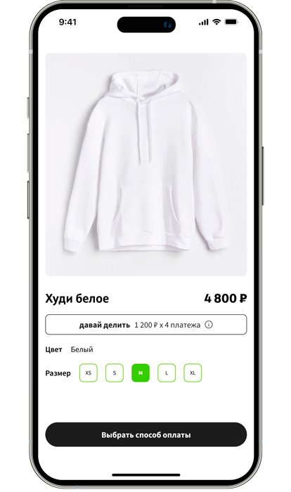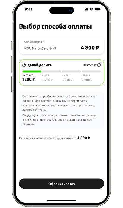 Давай делить покупки на 4 равных платежа!