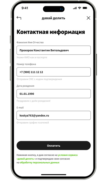 Всю информацию о рассрочке и график платежей вы увидите в личном кабинете сервиса «давай делить»